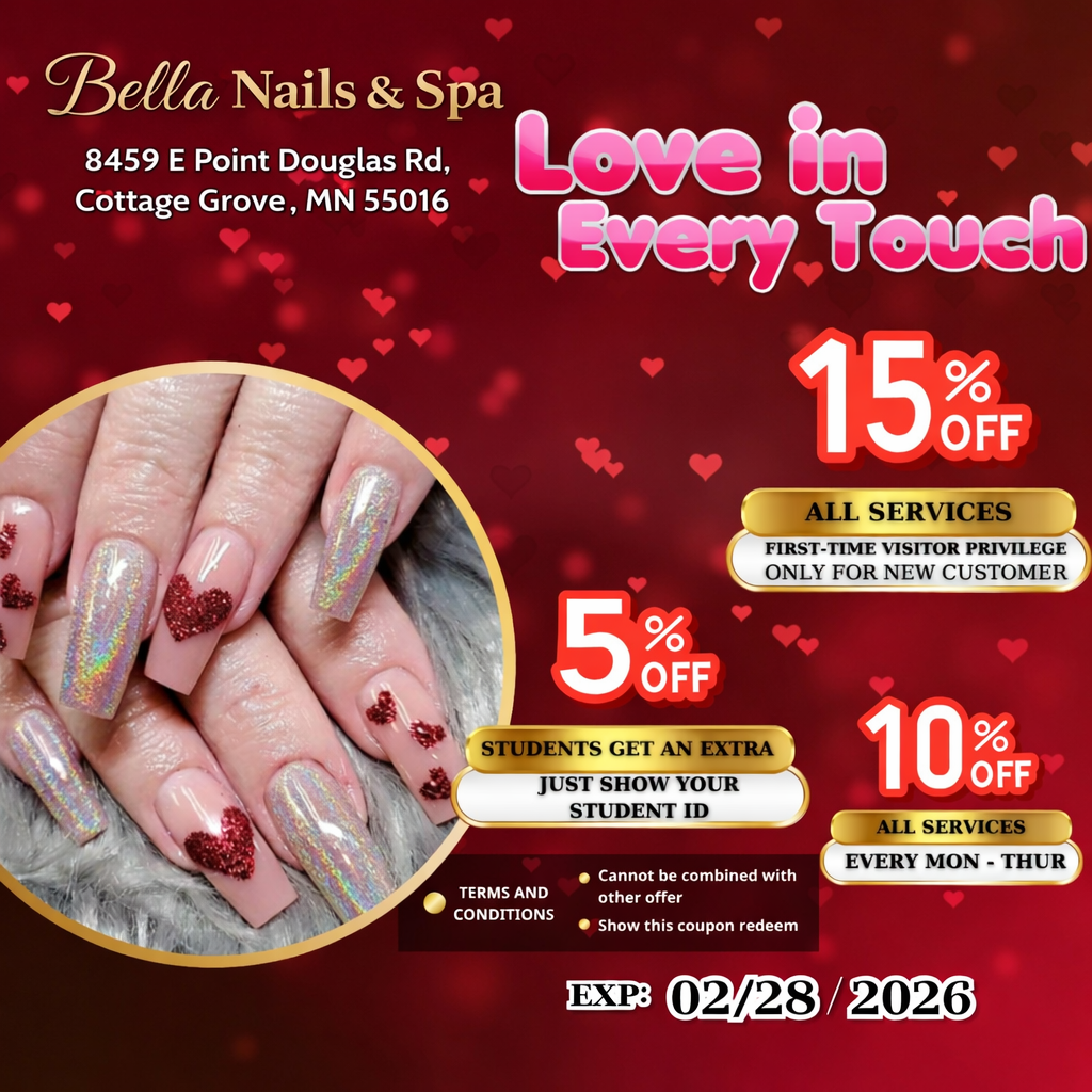 Are you looking for a reliable nail salon to perform nail and spa services? Look no further, Bella Nails & Spa is the ideal location. Visit us at 8459 E Point Douglas Rd, Cottage Grove, MN 55016, for beauty treatments and find yourself looking even more beautiful with a stylish look!