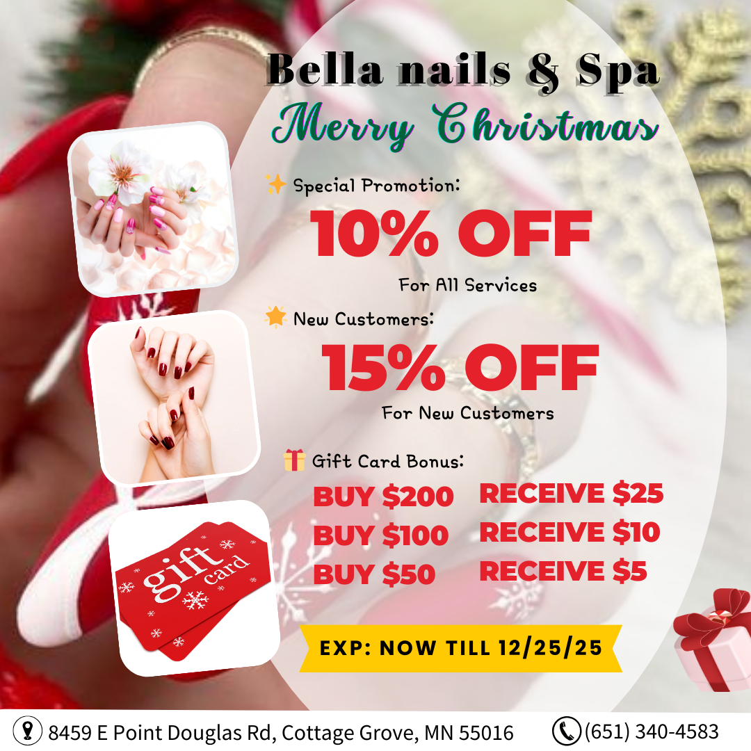 Are you looking for a reliable nail salon to perform nail and spa services? Look no further, Bella Nails & Spa is the ideal location. Visit us at 8459 E Point Douglas Rd, Cottage Grove, MN 55016, for beauty treatments and find yourself looking even more beautiful with a stylish look!